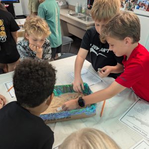 Our first week students explored watersheds. They learned how rain and runoff move through their neighborhoods and eventually into Sarasota Bay. Using an edible materials like sprinkles, chocolate syrup, colored coconut flakes, and cocoa powder, they saw firsthand how things like oil, fertilizers, yard waste, and chemicals enter waterways and impact marine life. This foundation helps young learners understand that caring for the bay begins at home long before water ever reaches the shoreline. Huge thanks to Sarasota Bay Estuary Program for providing SBW with their hand me down watershed model!