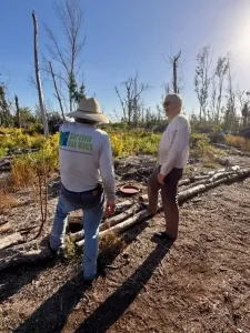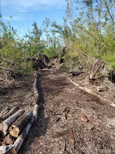 Volunteers planted young native trees that will ultimately replace invasive Australian pines. Crews also stacked downed wood into habitat piles, built simple log benches and improved trails.